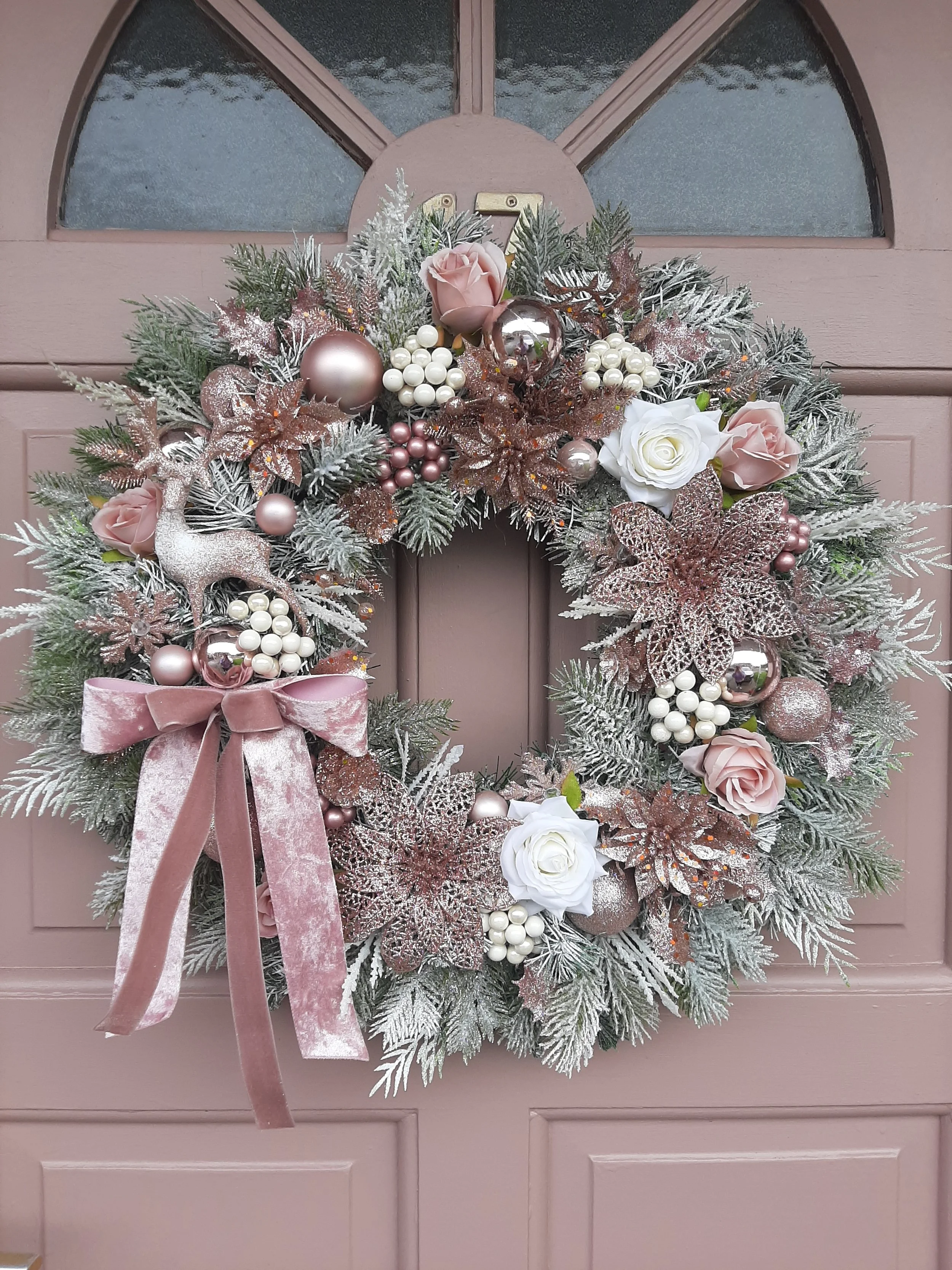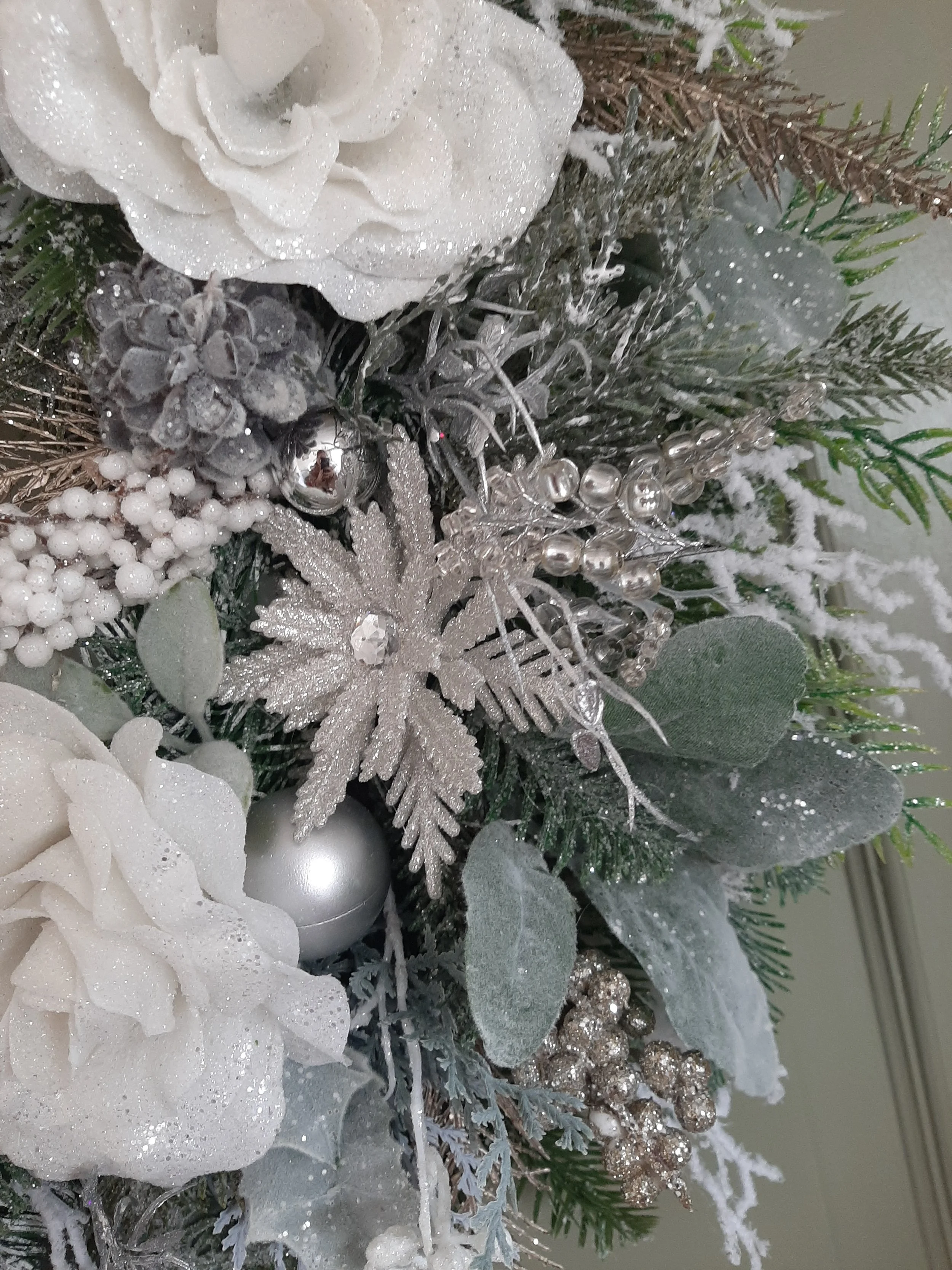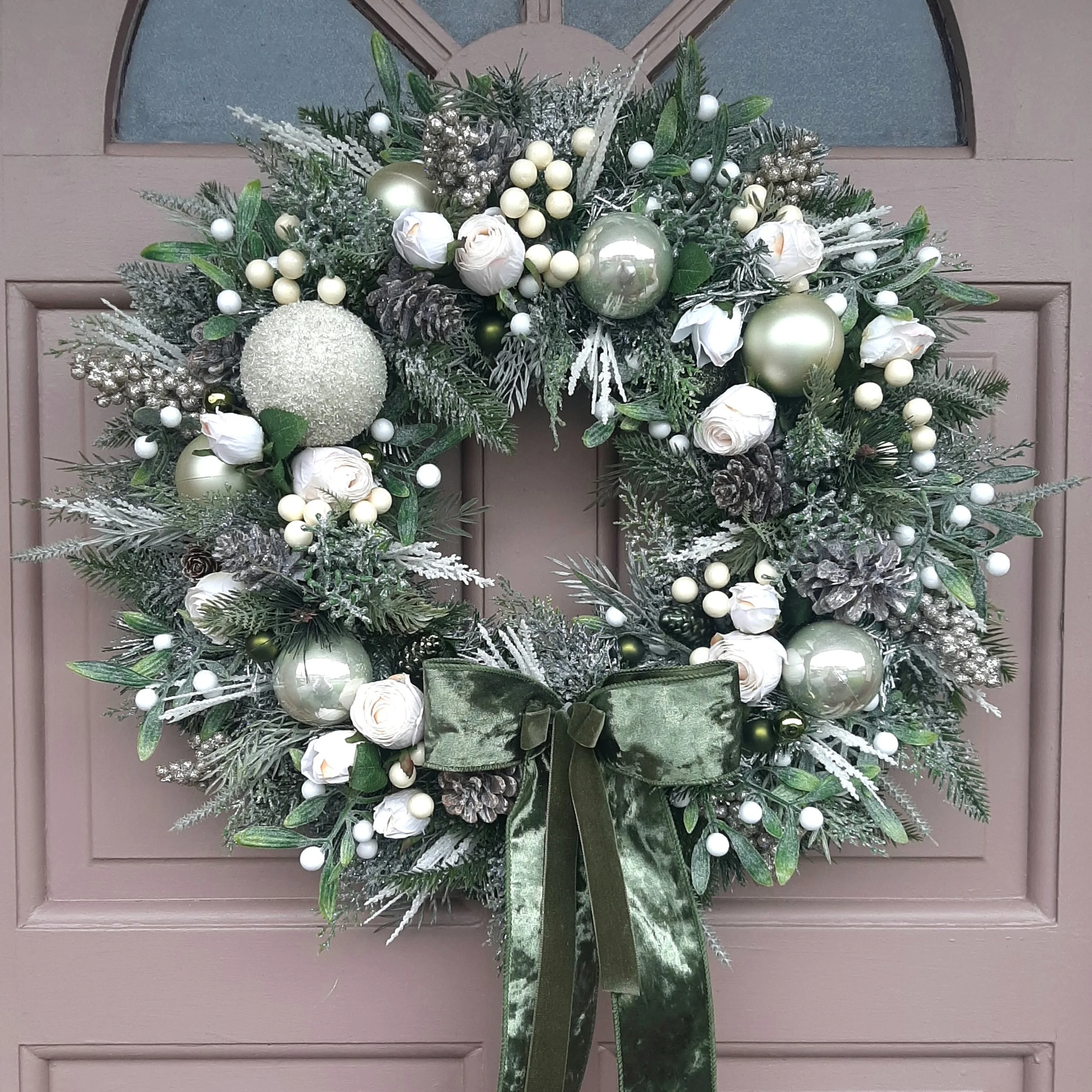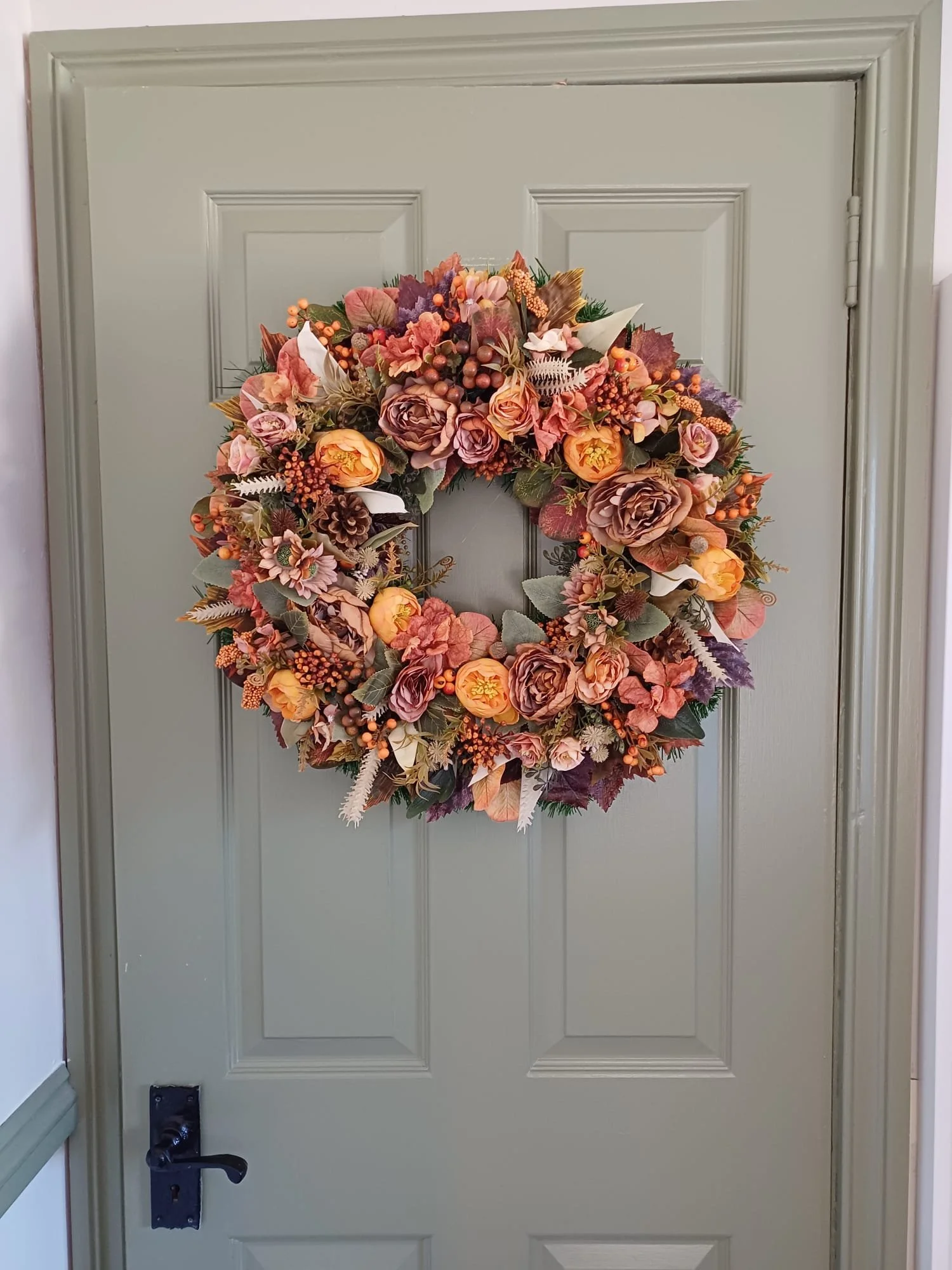 Created using an abundance of seasonal foliage, orange slices, berries, baubles and cinnamon sticks completed with red velvet bows and stunning bells.