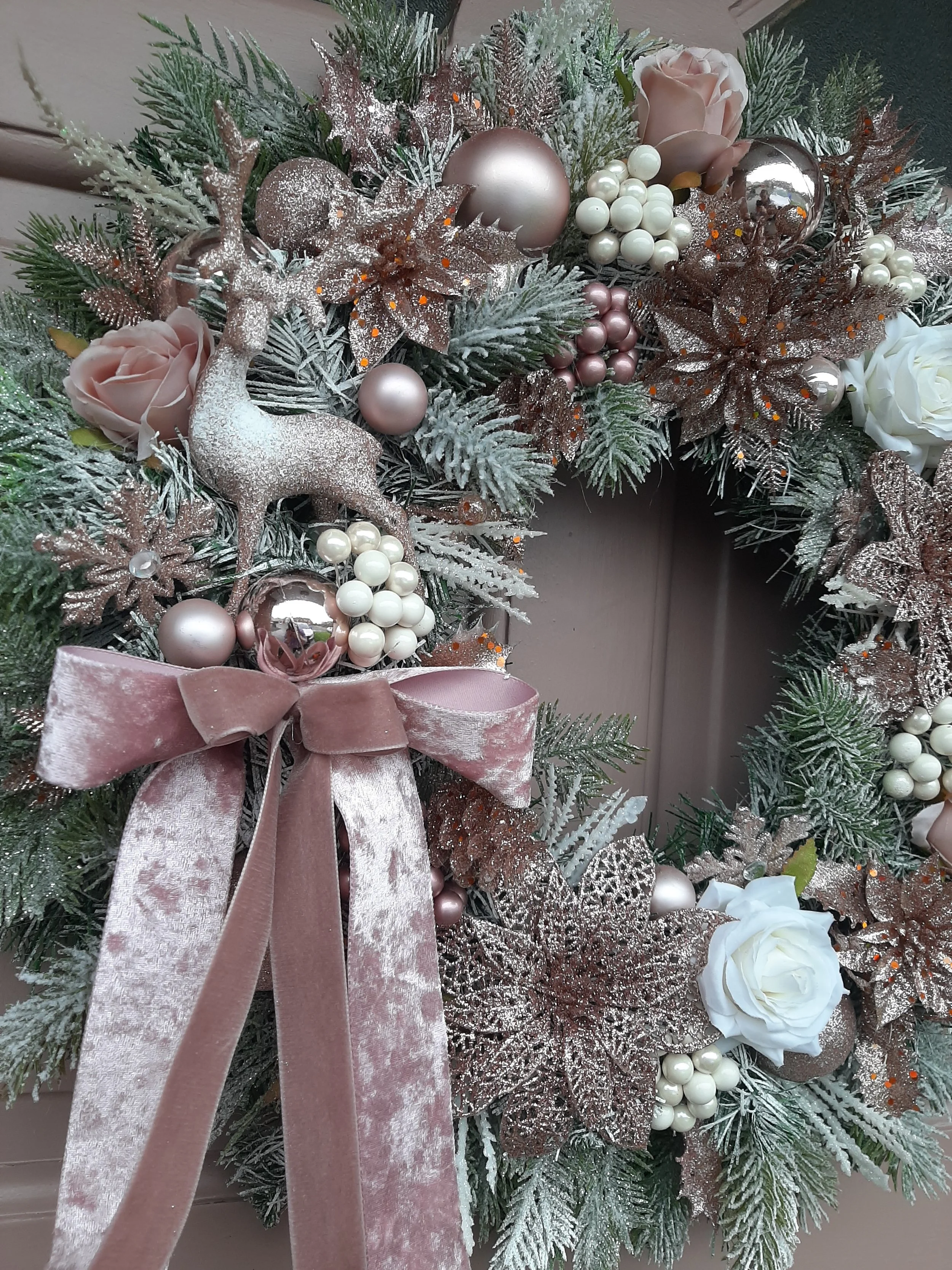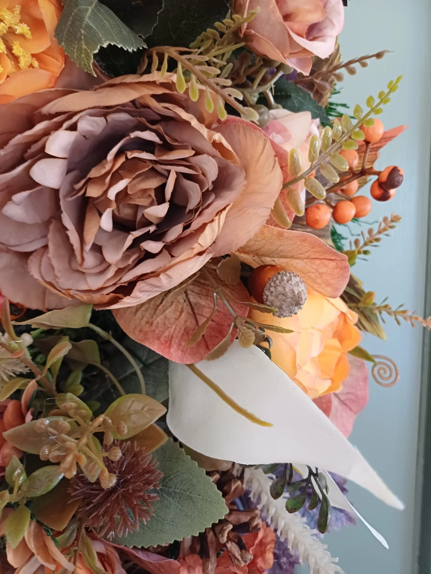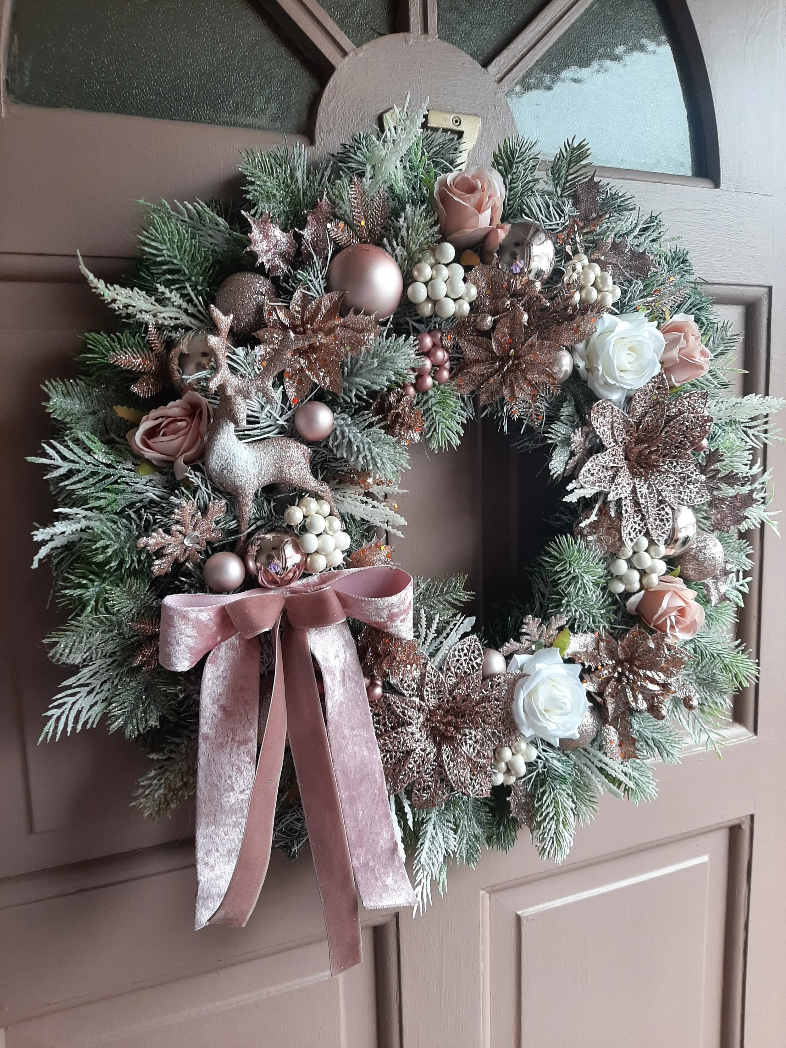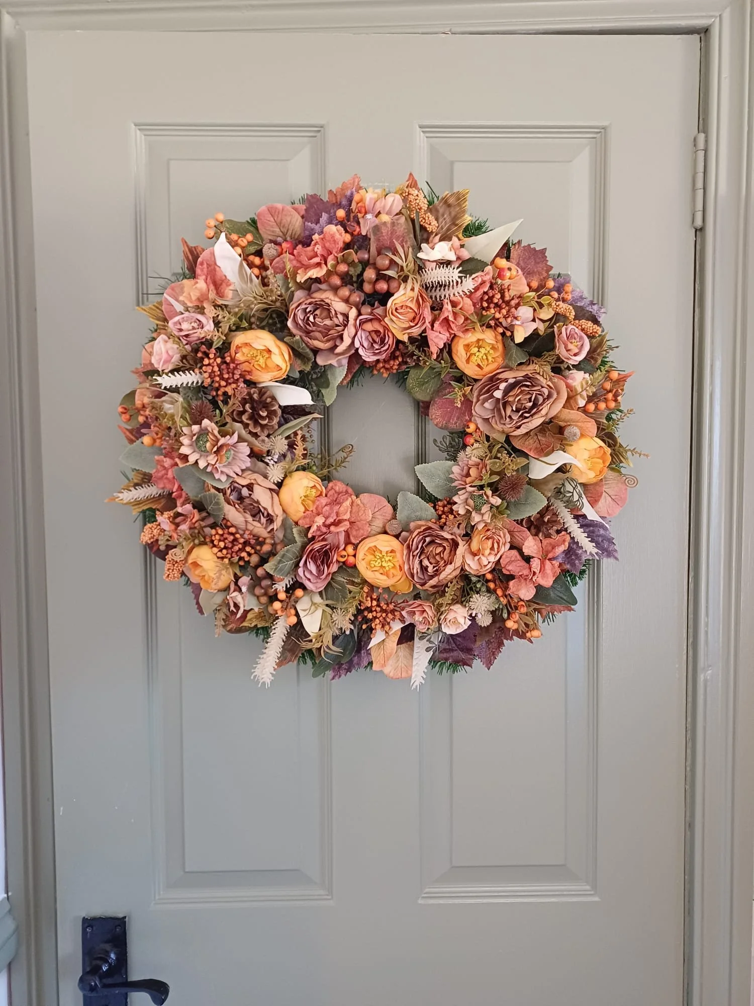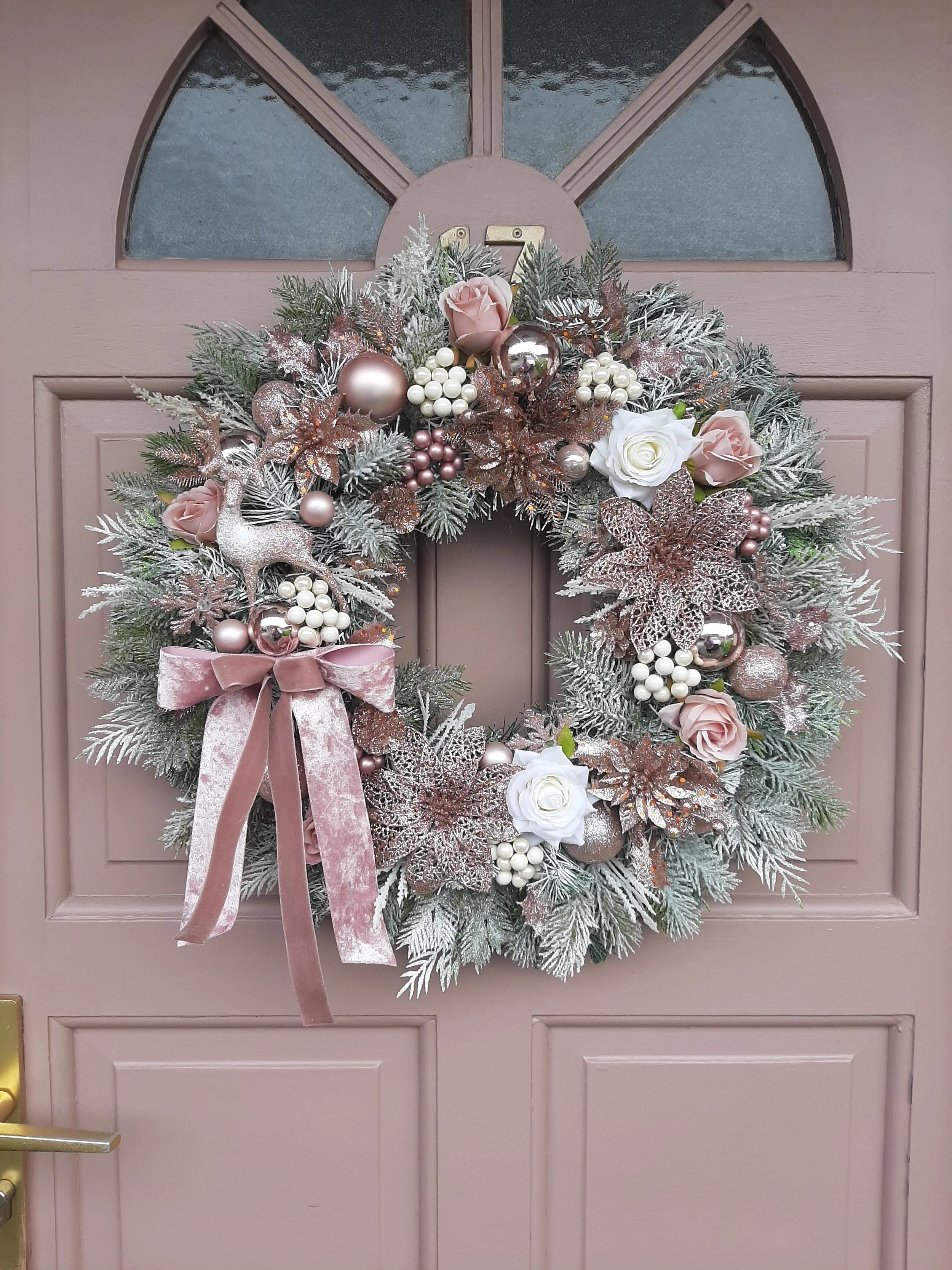 Created using an abundance of seasonal foliage, orange slices, berries, baubles and cinnamon sticks completed with red velvet bows and stunning bells.